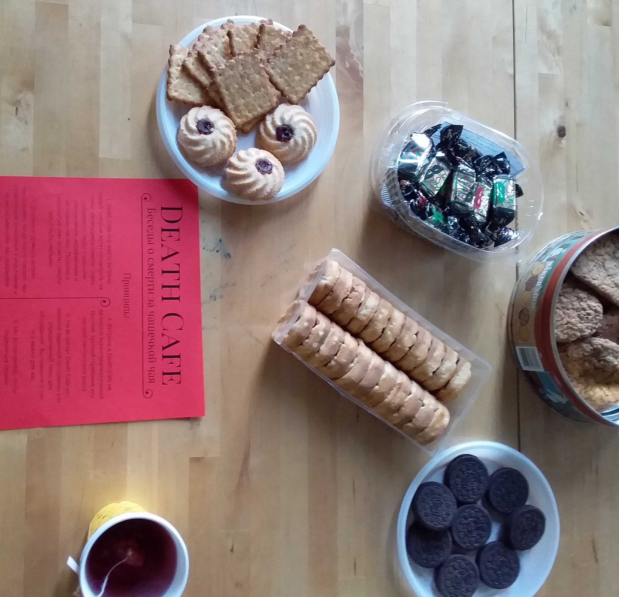На встречу можно по желанию приносить сладкое/не сладкое к чаю, сок, кофе, чай или оставить добровольное пожертвование на развитие проекта Death cafe в России.
